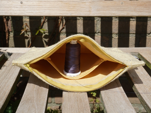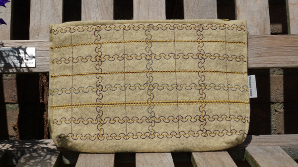 Beige geel etui van bio vilt met siersteken