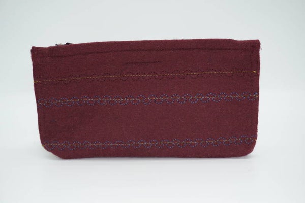Bordeaux rood etui van vilt met siersteken
