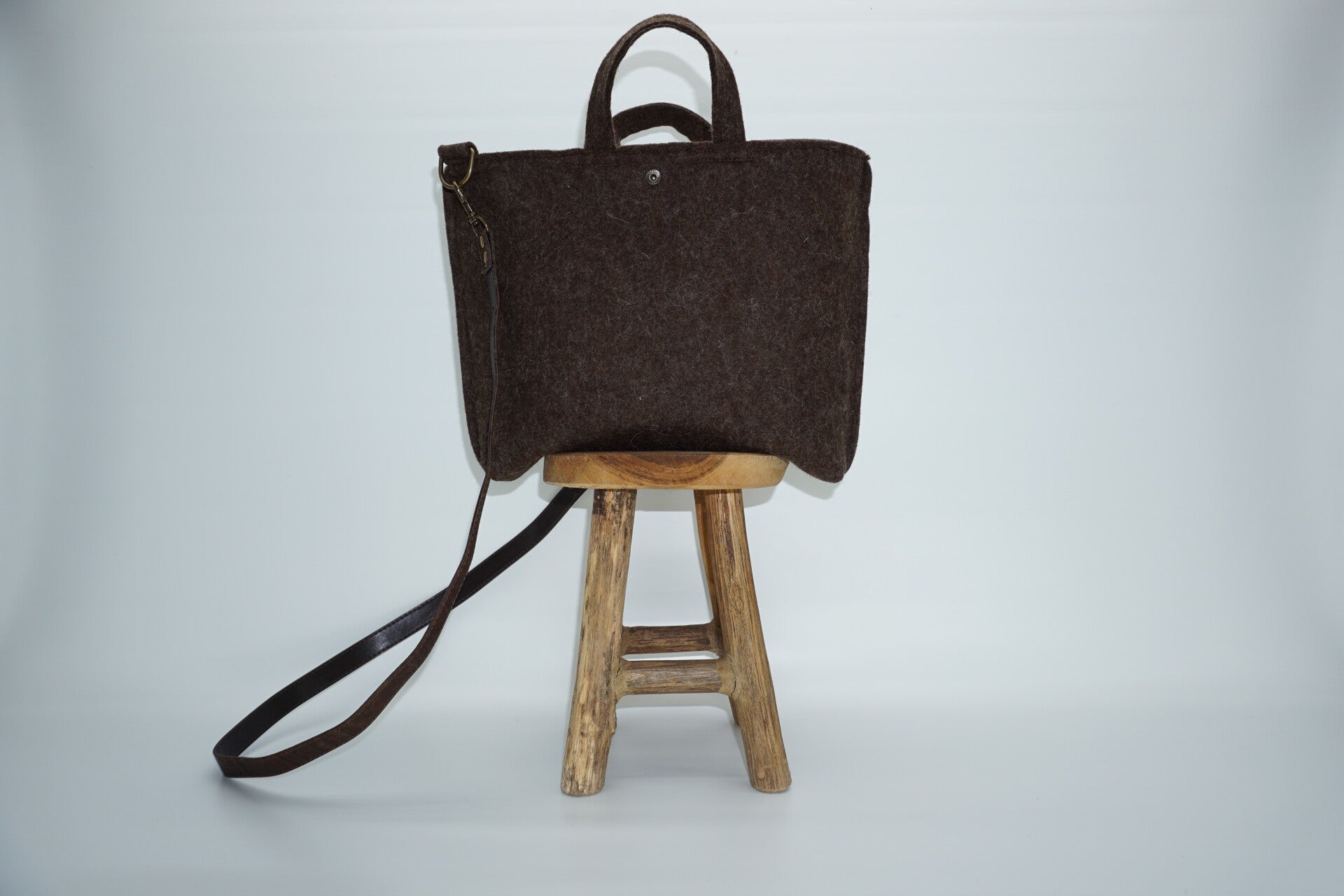 Bruine handtas/ crossbodytas van bio wolvilt met borduurpatroon